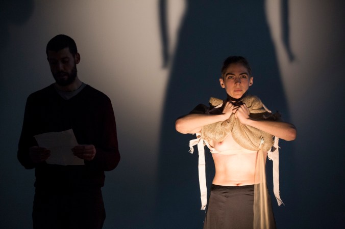 Utter East is a look at some of the sensory challenges associated with neuro-diversity, and the ritualisation of coping strategies. A live collaboration with band Dogfeet. Utter East is story of compulsive behaviour, purification, addiction, tears and dragon skin.